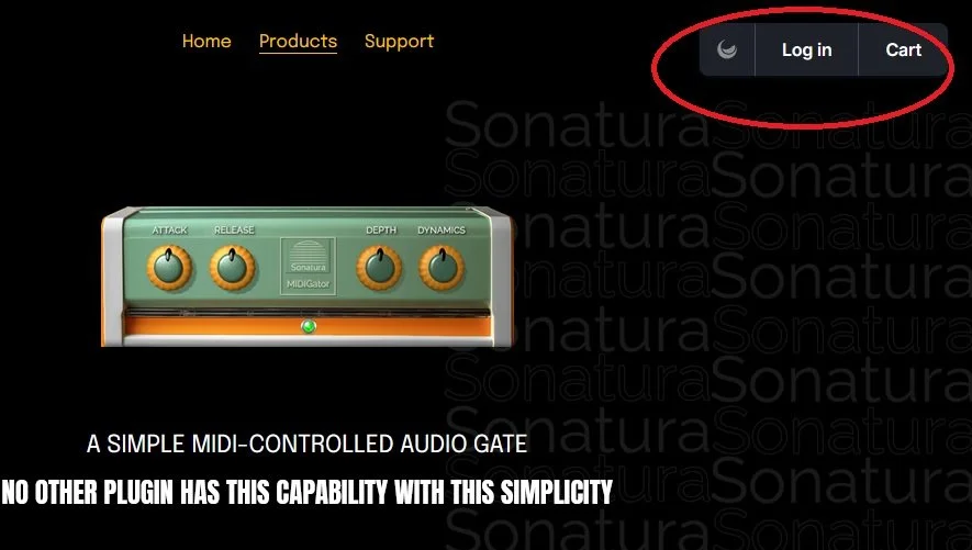 In any event, once the blockers are removed, you should see the three account buttons (as shown in the pic to the right) on the upper right-hand side of the screen. Once you press the button for MIDIGator, that will start the cart up automatically.
